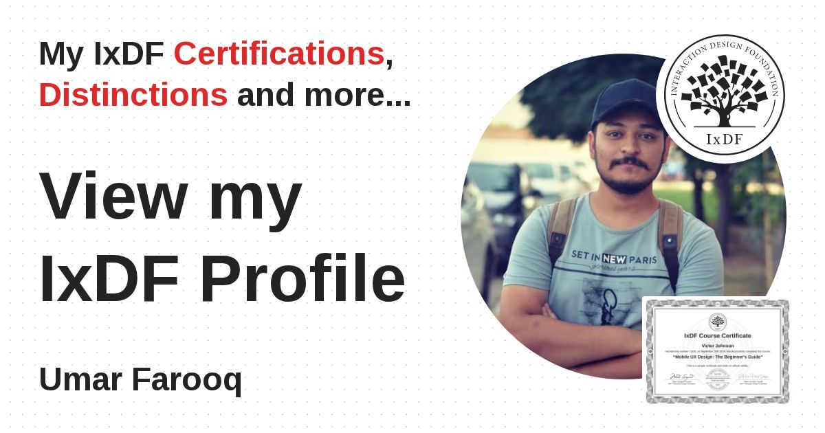IxDF Course Certificates are awarded to Umar Farooq in formal recognition of their coursework surpassing the rigorous benchmarks of exceptional performance established by the IxDF Educational Codex.