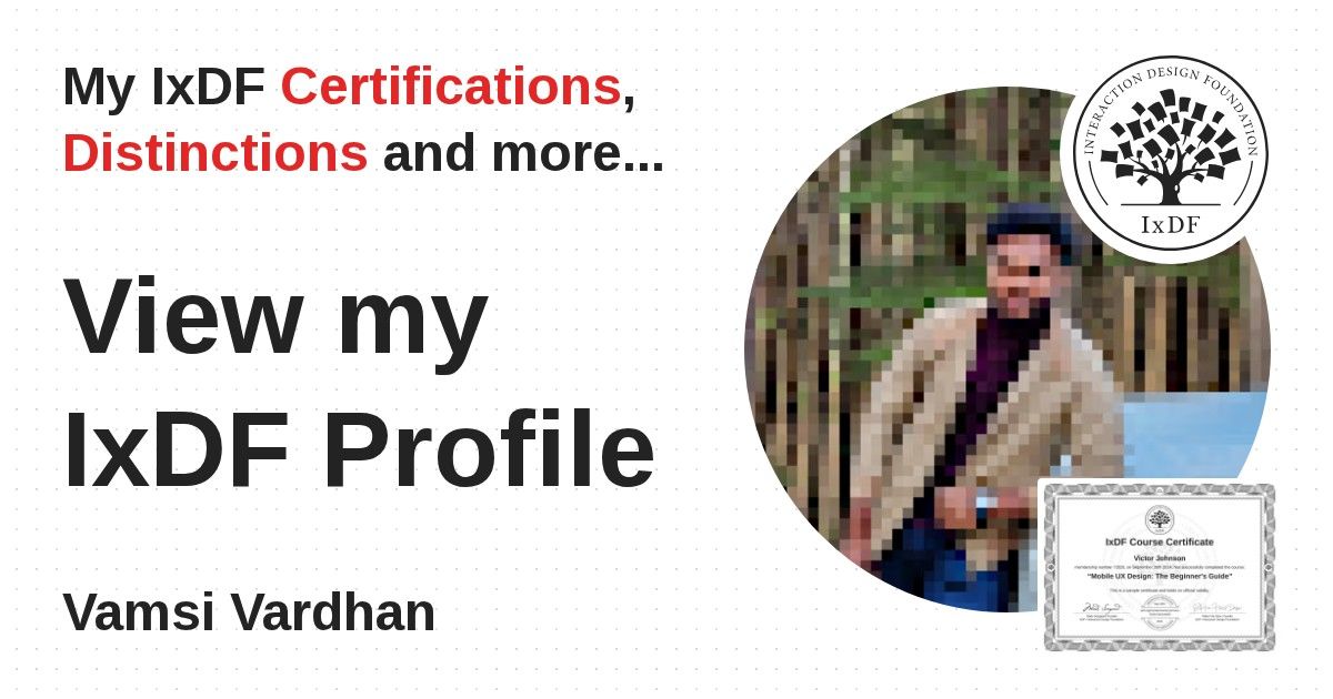 IxDF Course Certificates are awarded to Vamsi Vardhan in formal recognition of their coursework surpassing the rigorous benchmarks of exceptional performance established by the IxDF Educational Codex.