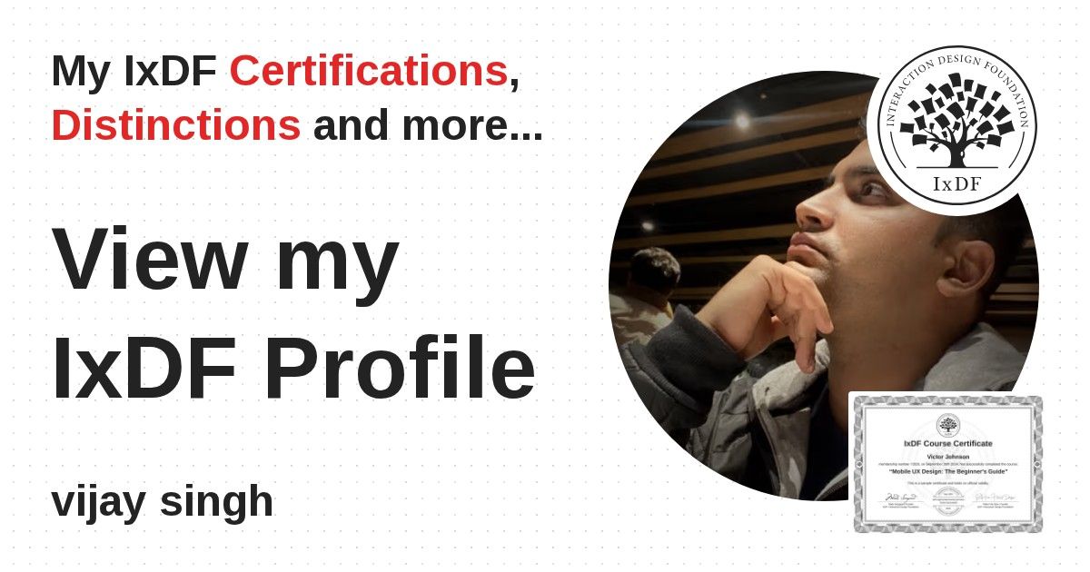IxDF Course Certificates are awarded to vijay singh in formal recognition of their coursework surpassing the rigorous benchmarks of exceptional performance established by the IxDF Educational Codex.