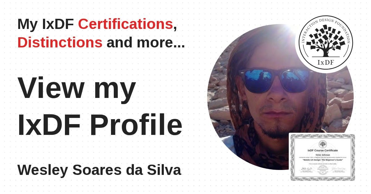 IxDF Course Certificates are awarded to Wesley Soares da Silva in formal recognition of their coursework surpassing the rigorous benchmarks of exceptional performance established by the IxDF Educational Codex.