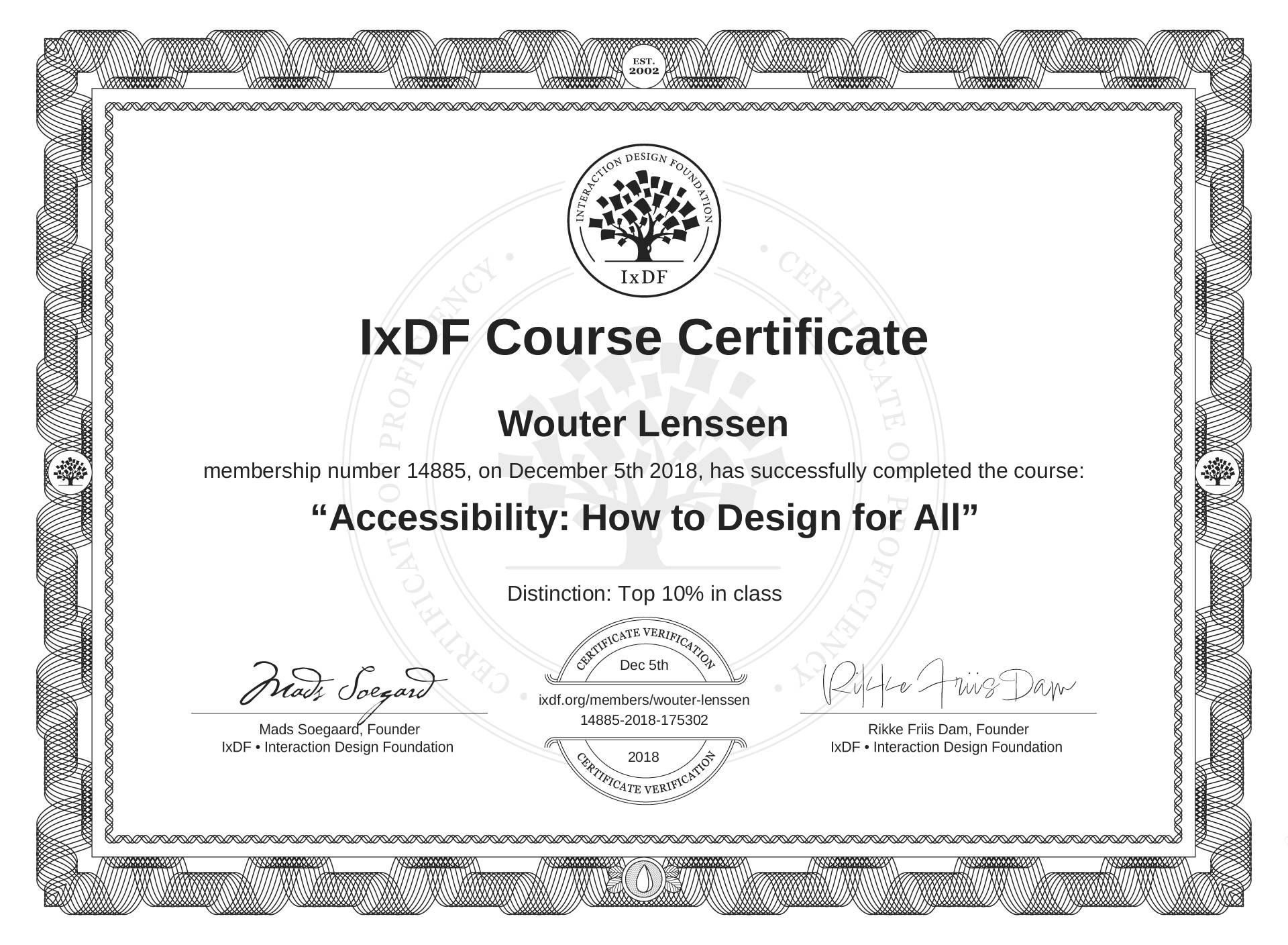 Wouter Lenssen's Course Certificate: Accessibility: How to Design for All